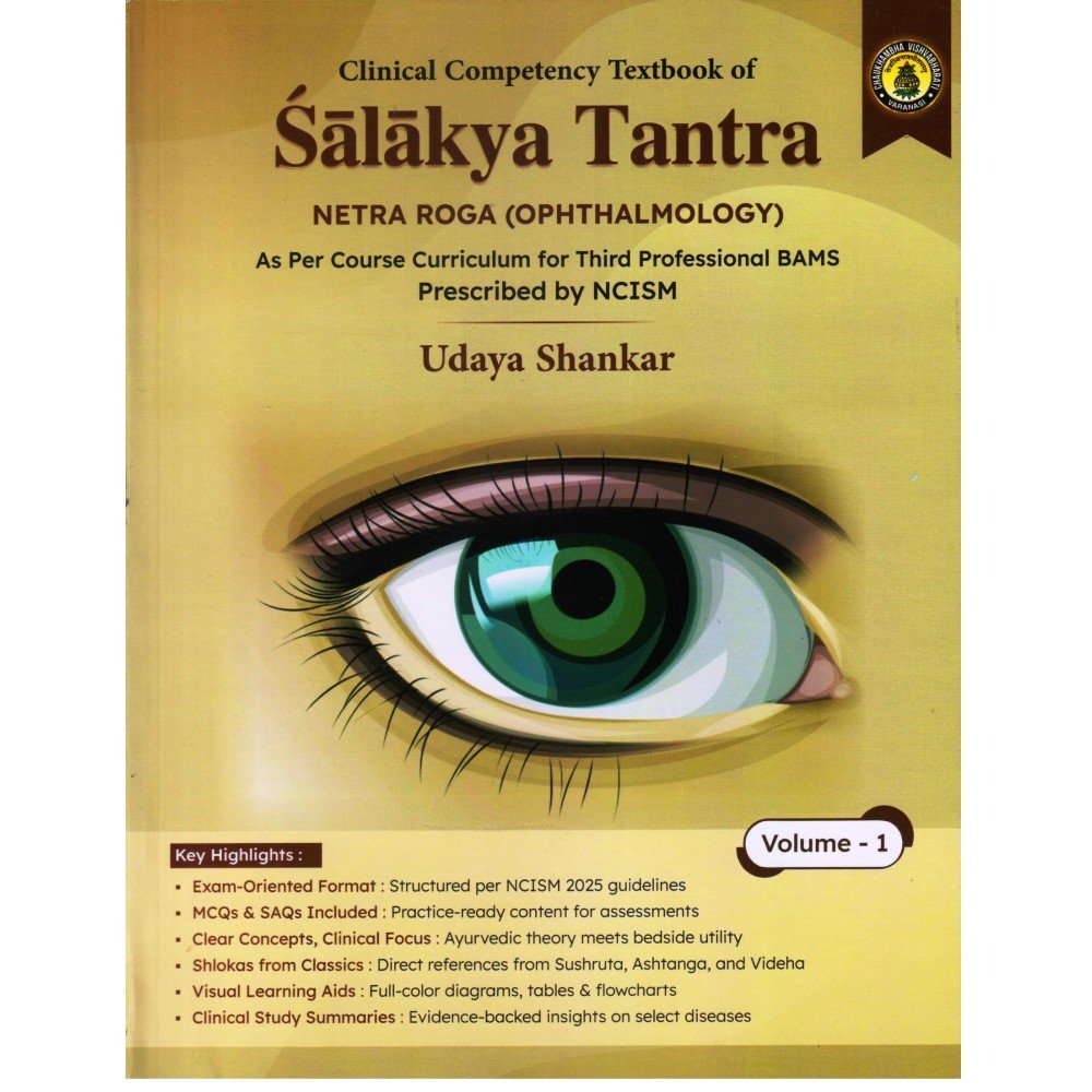 This Clinical Competency Textbook of Salakya Tantra is a thoroughly revised edition of the widely acclaimed Salakya Tantra (Part 1 : Netra Roga) first published in 2012. Carefully updated to align with the NCISM 2025 syllabus, it bridges the timeless insights of Ayurveda with evidence-informed clinical practices.